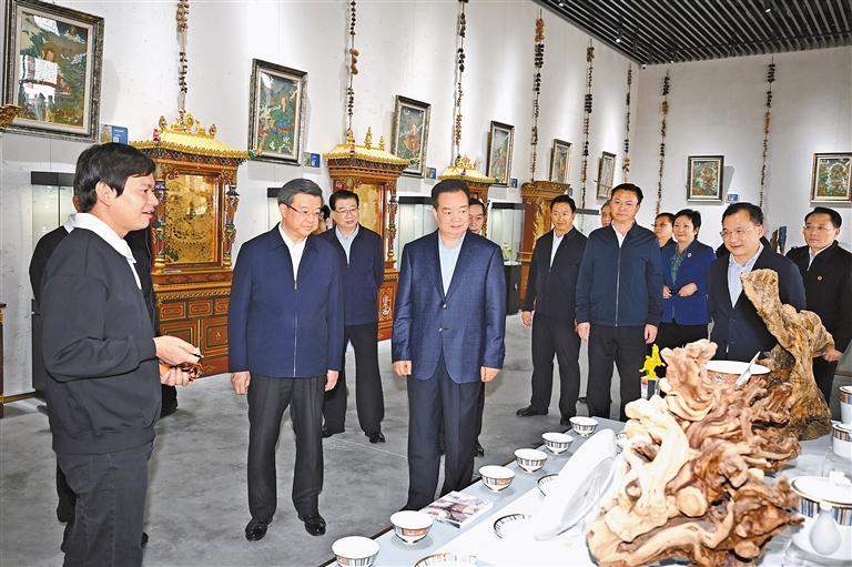 9月3日至6日,河北省党政代表团来藏考察。这是王君正陪同河北省党政代表团在城发莲花之宝文化发展有限公司了解援藏企业建设运营情况。 本报记者 旦增西旦 摄